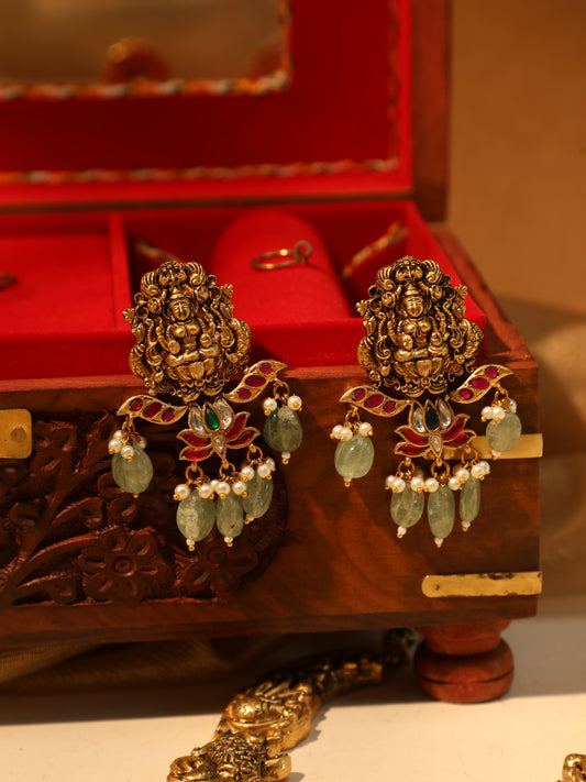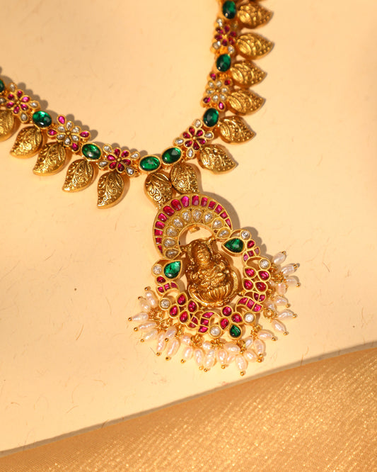 Antique Gold Finish Lakshmi Jadau Kundan Necklace Set with Matching Earrings | NC036