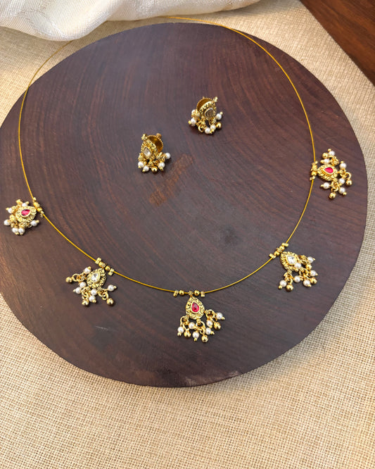 Antique Jadau Kundan Invisible Chain Necklace with Earrings | NC132
