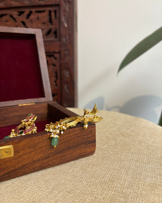 Statement Royal Peacock Ear Cuff Jhumkas – Intricate Kundan Design | ER232