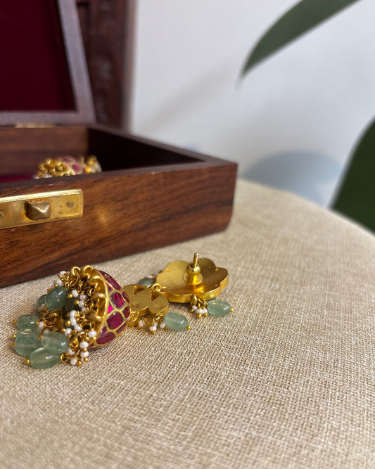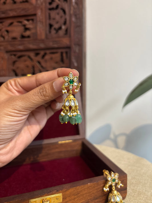 Green Jadau Kundan Jhumkas – For Kids & Adults | ER266