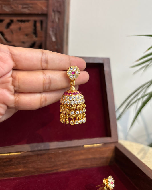 Ruby & White Moissanite Floral Long Statement Jhumkas | ER246