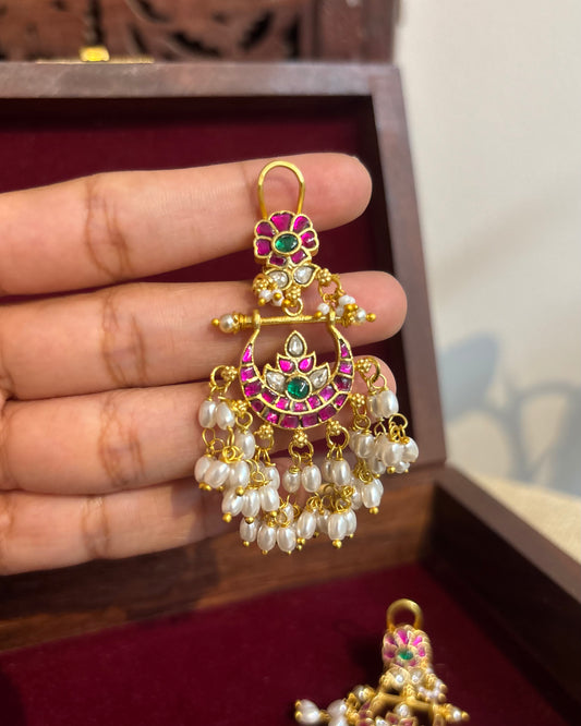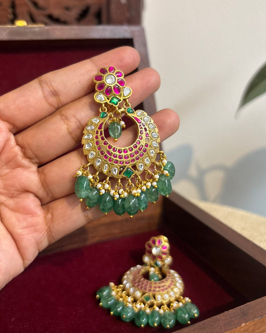 Bridal Jadau Kundan Chandbali Earrings with Pearls & Strawberry Beads | ER248
