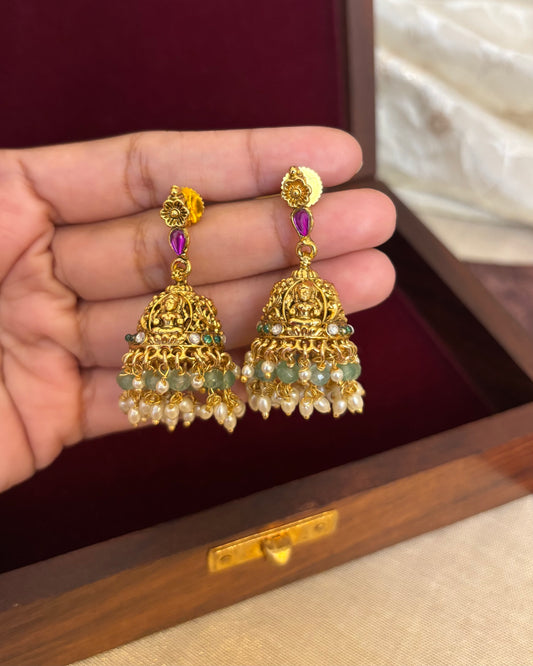 Lakshmi & Floral Kaasu Haram with Kundan Detailing & Matching Jhumkas | NC112