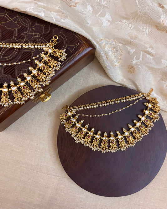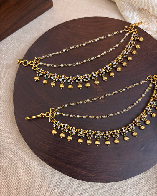 Three-Layer Antique Finish Mango Motif Bridal Ear Chain | EC059