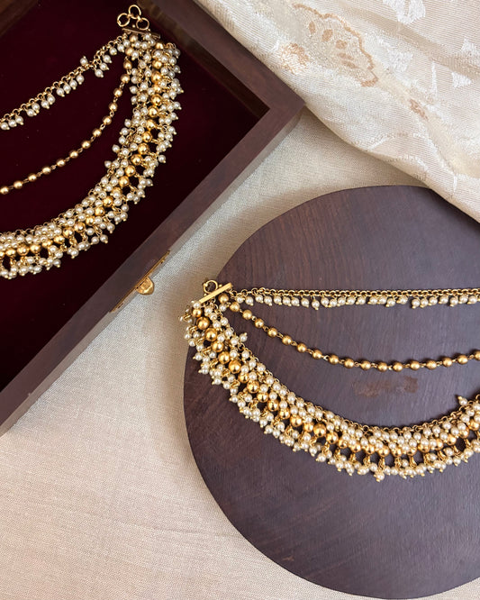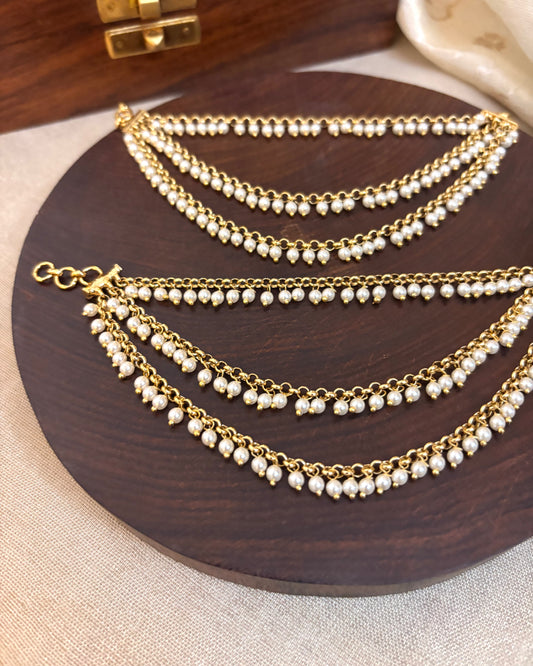 Gold Finish Pearl Three-Layer Ear Chain | EC048