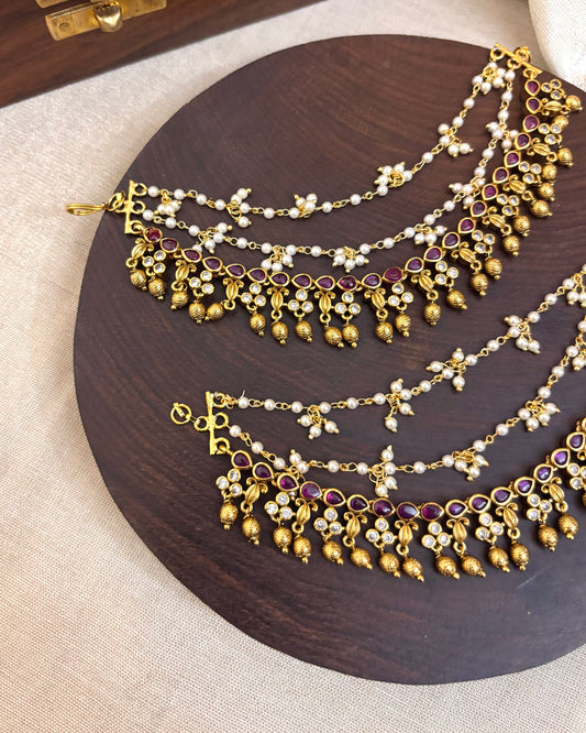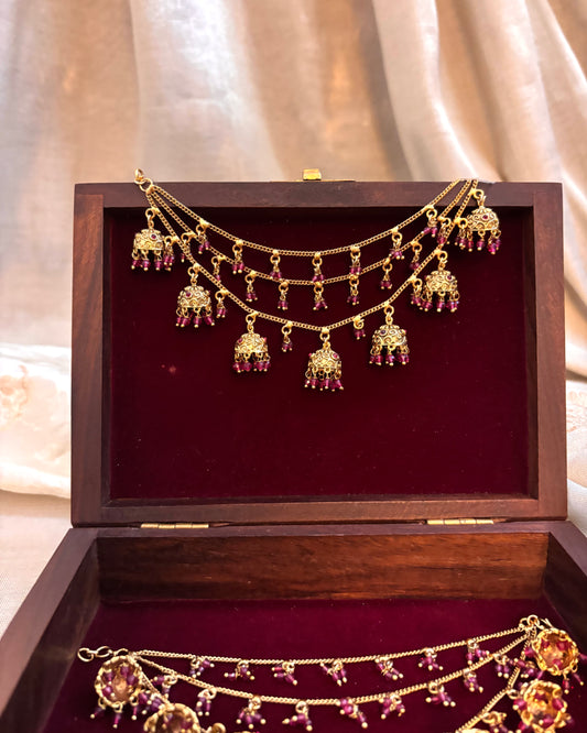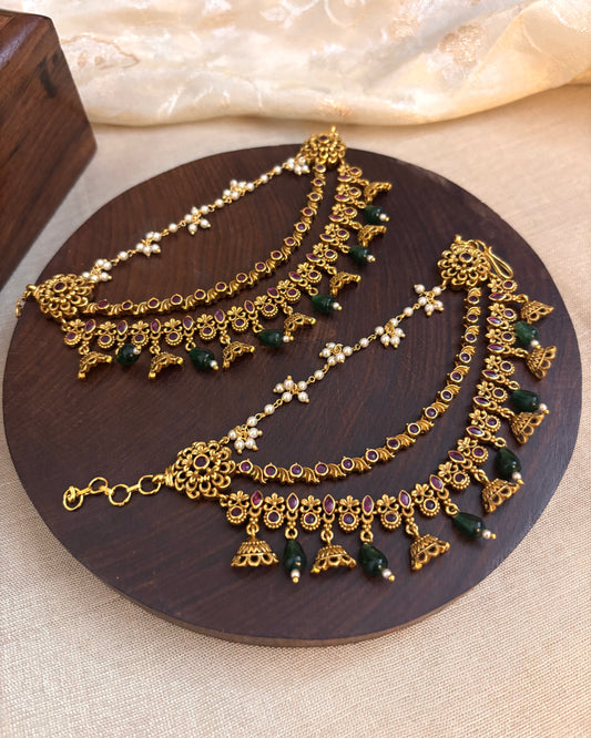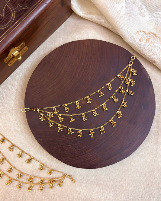 Three-Layer Antique Finish Jhumka Ear Chain – Traditional Bridal Accessory | EC057