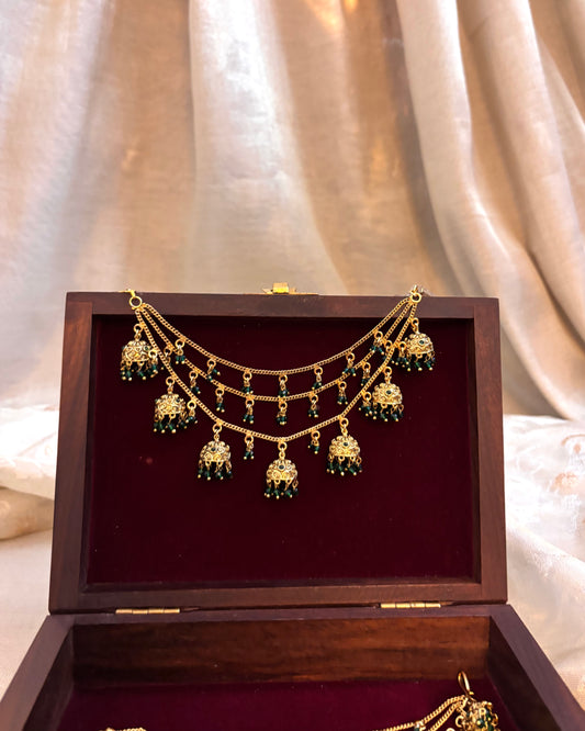 Three-Layer Antique Finish Jhumkas Bridal Ear Chain | EC068