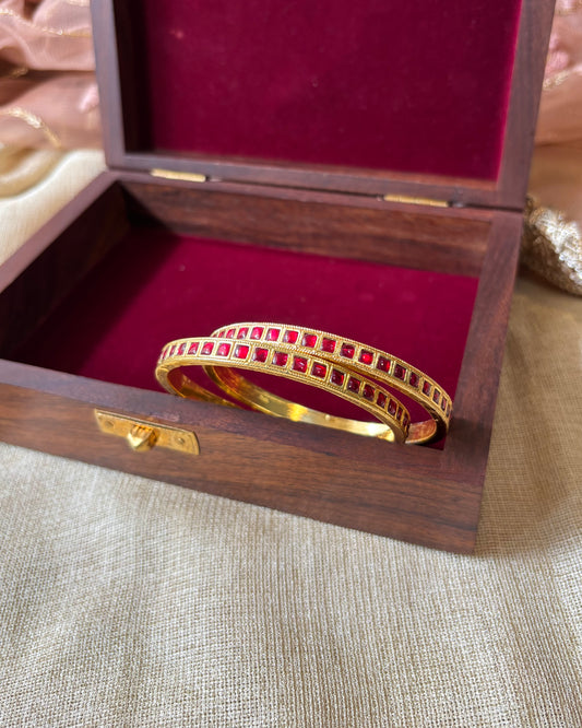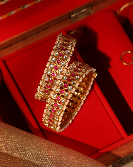 Minimal Ruby Jadau Kundan Bangles | BA010