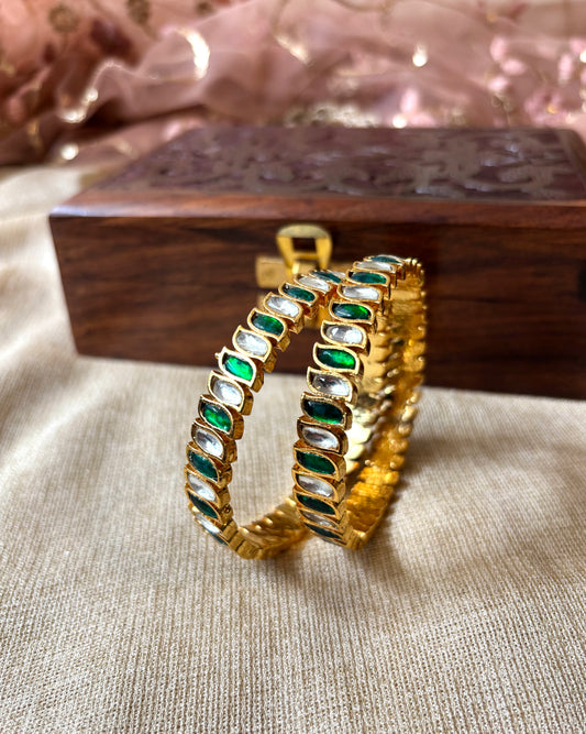 Jadau Kundan Tear Drop Bangles – White & Pink, Simple and Elegant | BA008