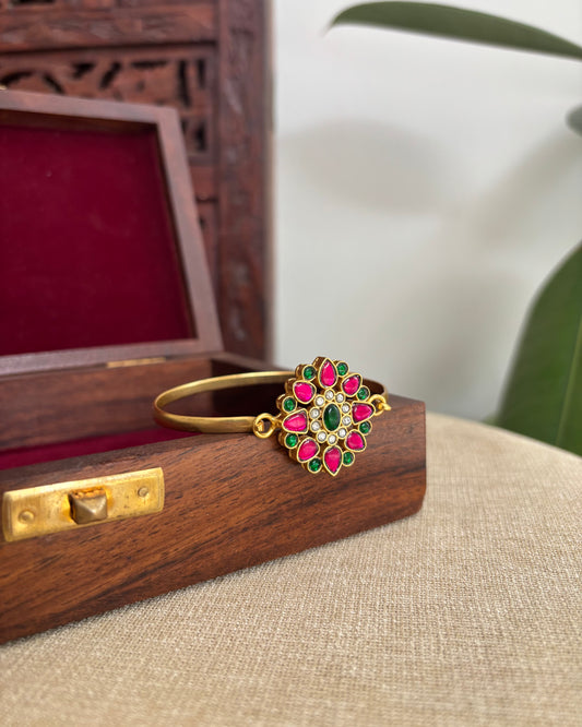Jadau Kundan Gold Plated Kada Bangles with Multicolor Floral Pendant | BA007