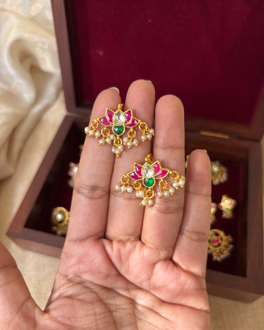 Handcrafted Multicolor Lotus Bugadi – Jadau Kundan Ear Accessory | ER138