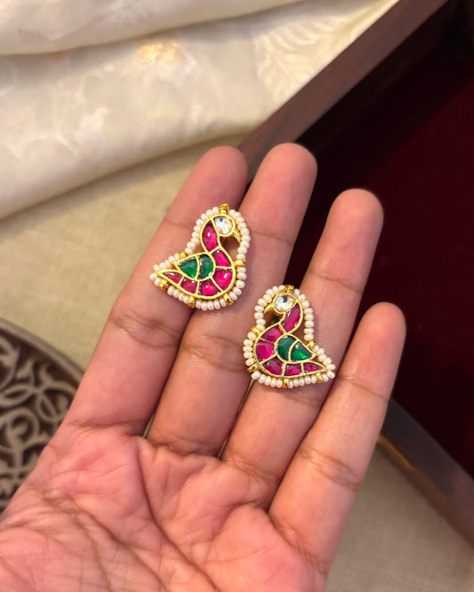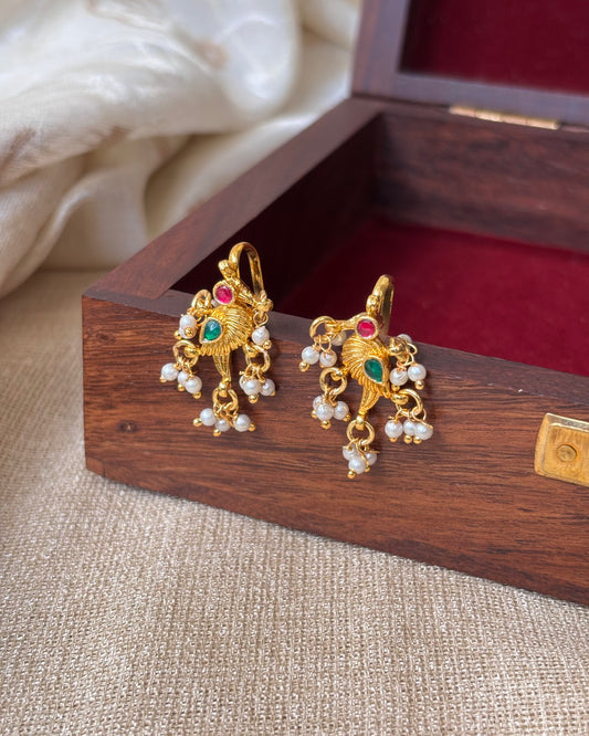 Handcrafted Parrot Motif Bugadi – Jadau Kundan Ear Accessory | ER065
