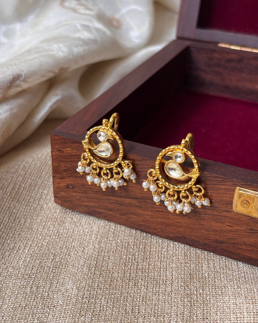 White & GoldHandcrafted Peacock Bugadi – Jadau Kundan Ear Accessory | ER068