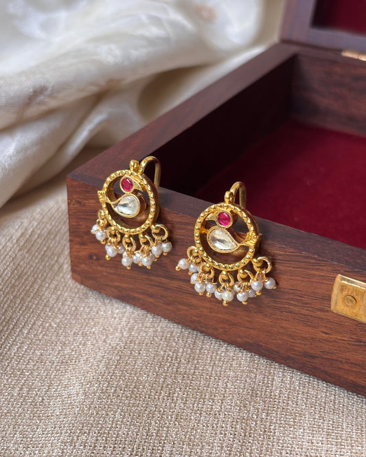 Handcrafted Peacock Bugadi – Jadau Kundan Ear Accessory in Gold Plating | ER026