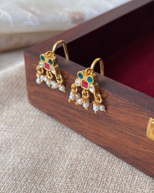 Handcrafted Parrot Motif Multicolor Bugadi – Jadau Kundan Ear Accessory | ER029