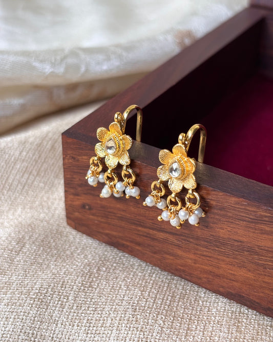 Delicate Floral Gold-Finish Bugadi with White Kundan | ER024