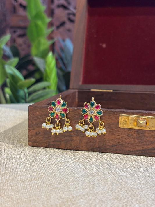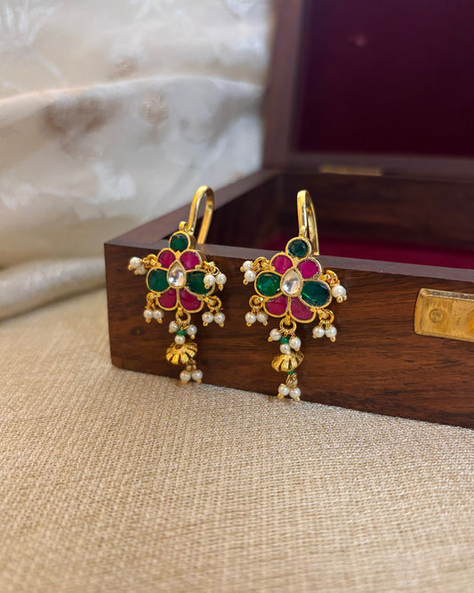 Multicolor Floral Gold-Finish Jadau Bugadi | ER075