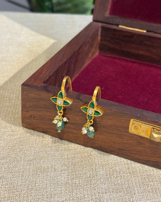Floral Green Gold-Finish Jadau Bugadi | ER136