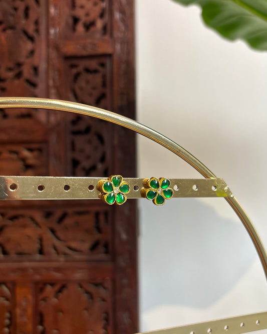 Minimal Pachi Kundan Floral Jhumkas | ER126