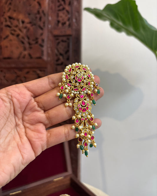 Long Statement Jadau Kundan Earrings – Multicolour with Pearl Detailing | ER186