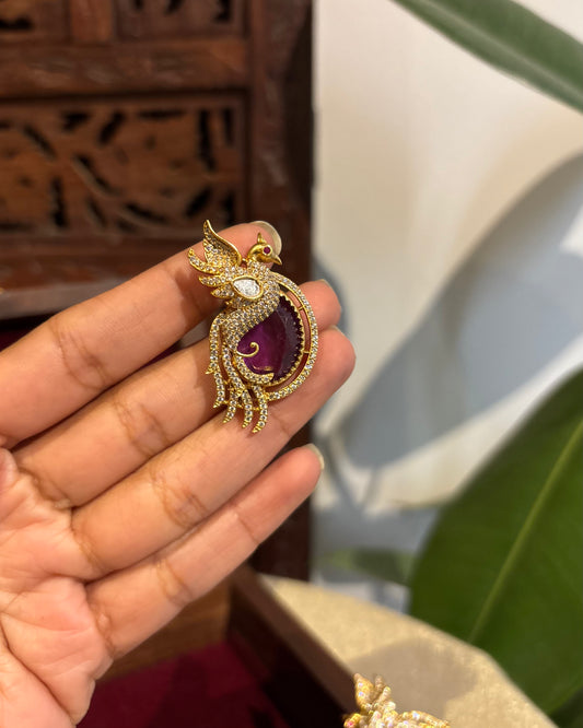Purple Peacock AD Stud Earrings | ER219