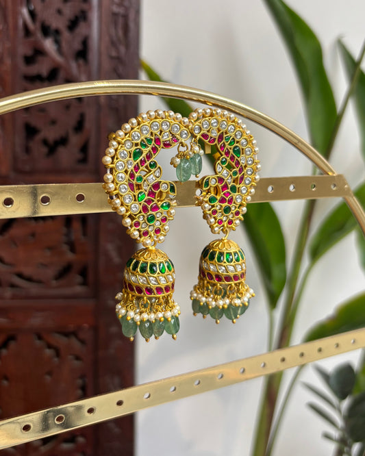 Handcrafted Peacock Jadau Kundan Jhumkas – Statement Earrings | ER174
