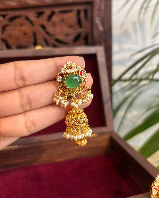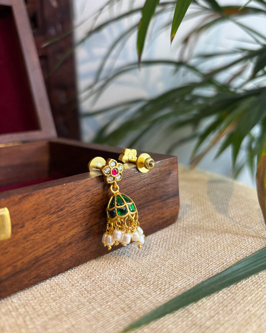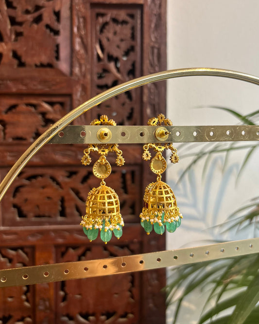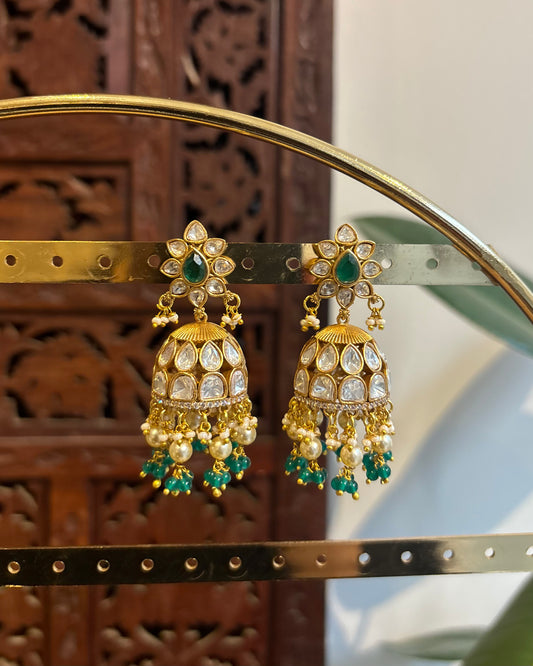 Green Jadau Kundan Jhumkas – For Kids & Adults | ER239