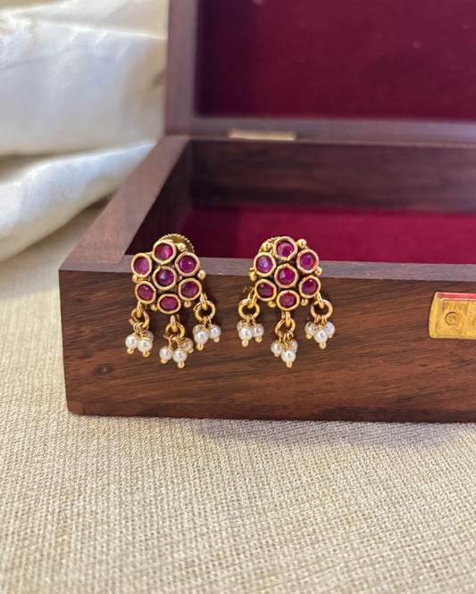 Bridal Jadau Kundan Jhumkas with Pearls & Strawberry Beads | ER054