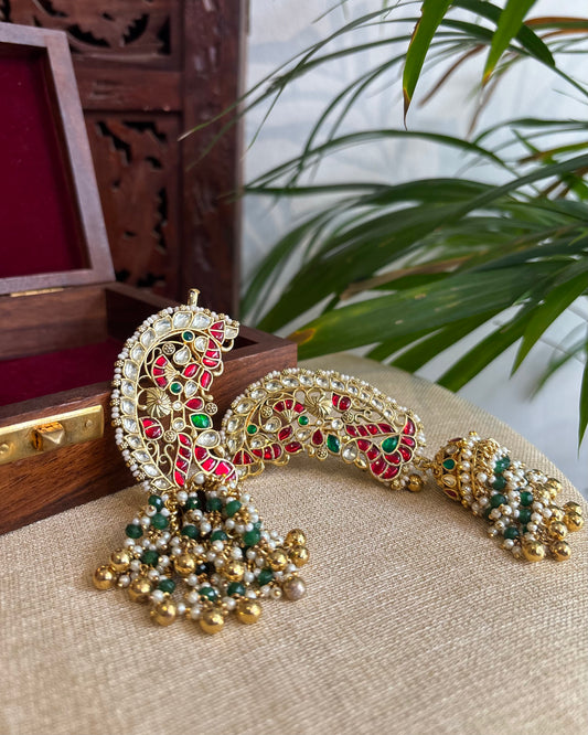 Statement Contemporary Peacock Ear Cuff Jhumkas – Intricate Kundan Design | ER231