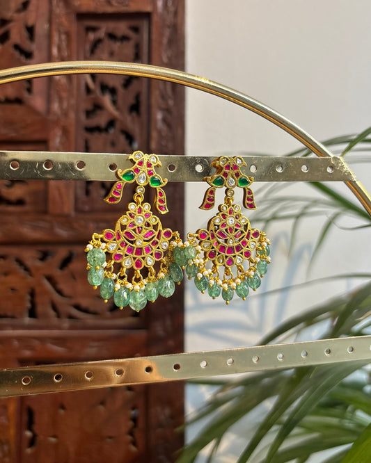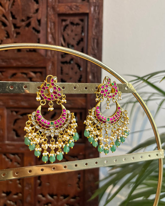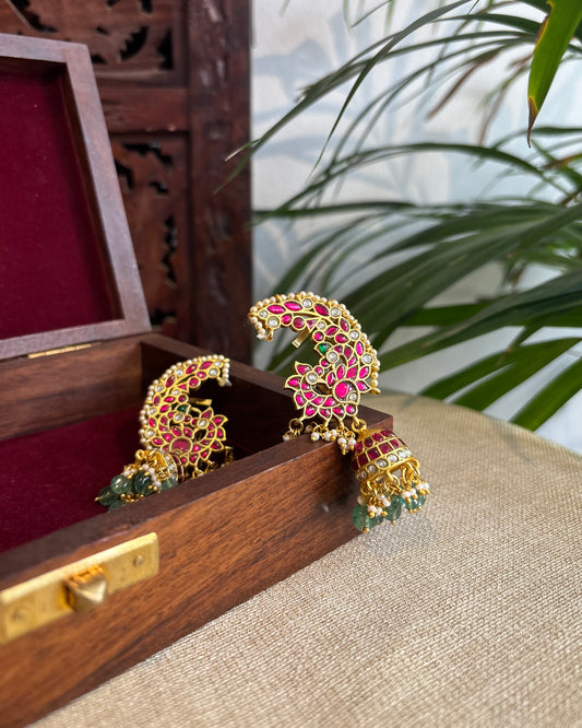 Handcrafted Peacock Jadau Kundan Jhumkas | ER242