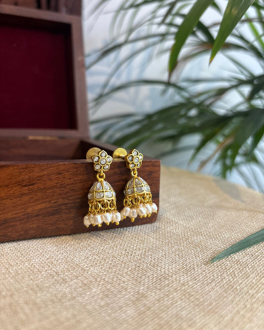 White Jadau Kundan Jhumkas – For Kids & Adults | ER238
