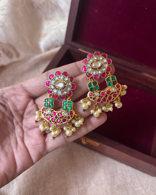 Floral Statement Multicolor Jadau Kundan Earrings | ER064