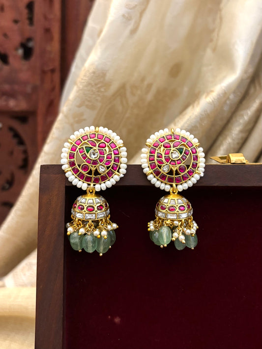 Bridal Jadau Kundan Jhumkas with Pearls & Strawberry Beads | ER066