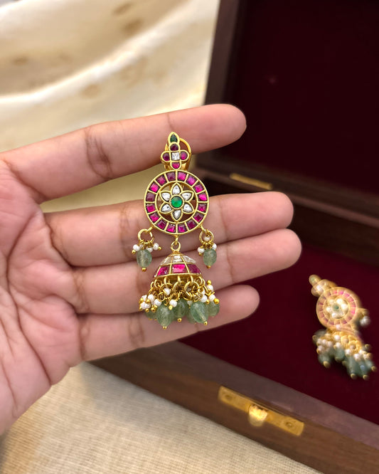 Floral Statement Multicolor Jadau Kundan Jhumkas | ER081