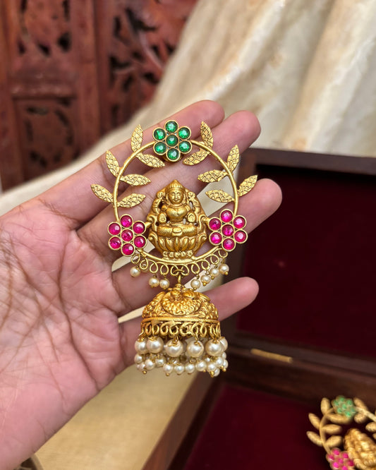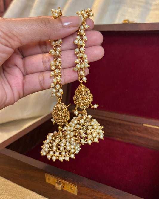 Pearl Antique Lakshmi Jhumkas with Attached Straight Mattal | ER109