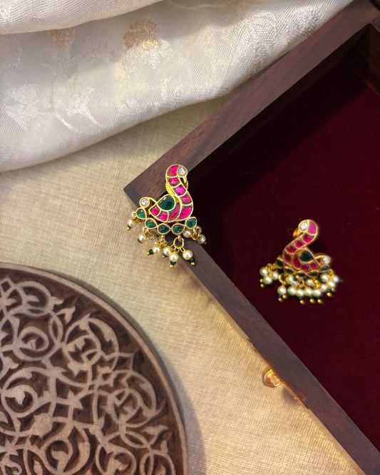 Peacock Glory: Multicolor Jadau Kundan Stud Earrings | ER092
