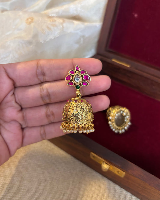 Jadau Kundan Antique Finish Jhumkas | ER096