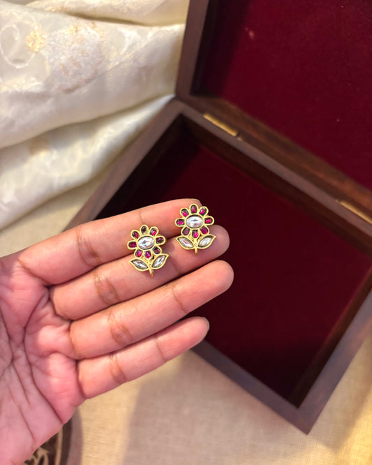 Minimal Jadau Kundan Floral Jhumkas | ER094