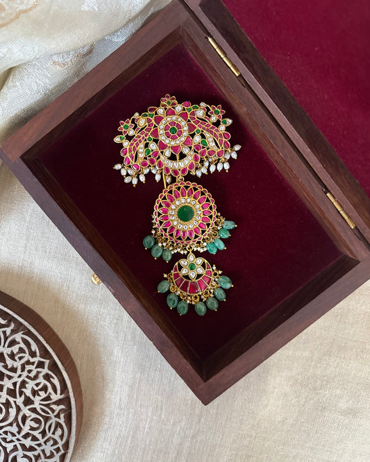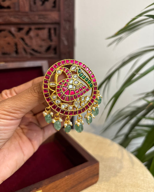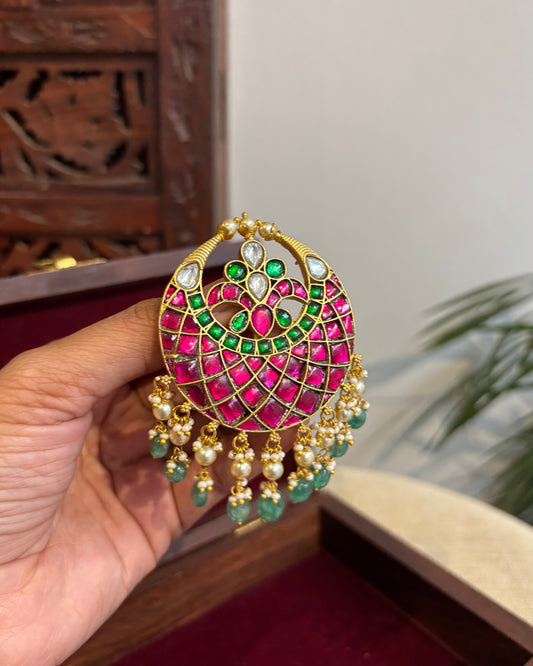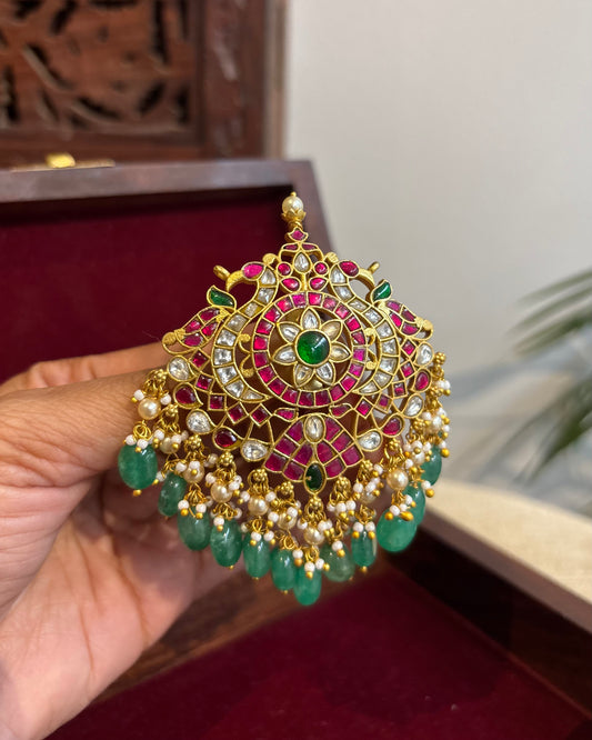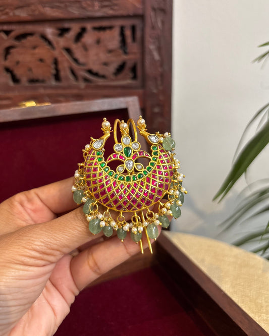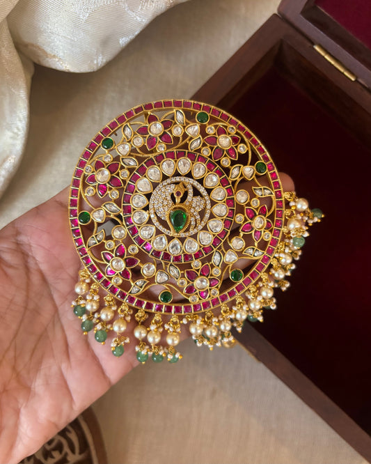 Royal Peacock Jadau Kundan Hair Pendant – Elegance for Your Braids | HA267