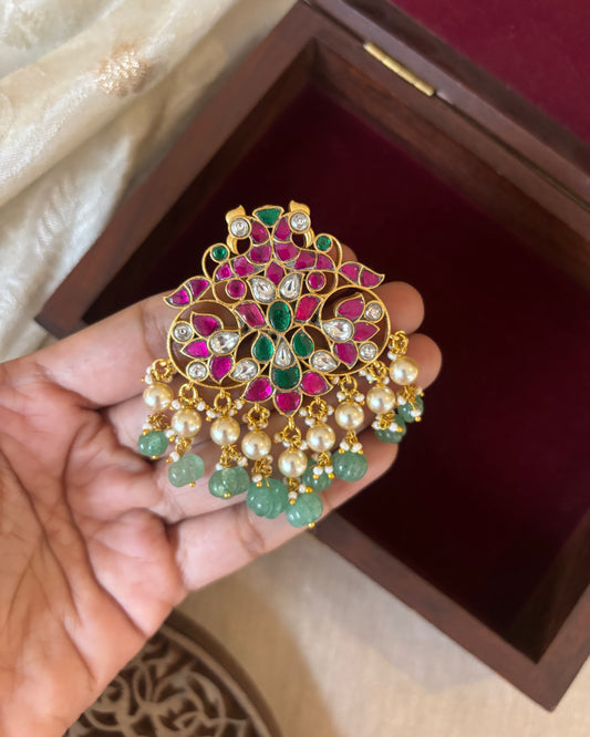 Multicolor Royal Floral Jadau Kundan Pendant | Ruby & White | HA288