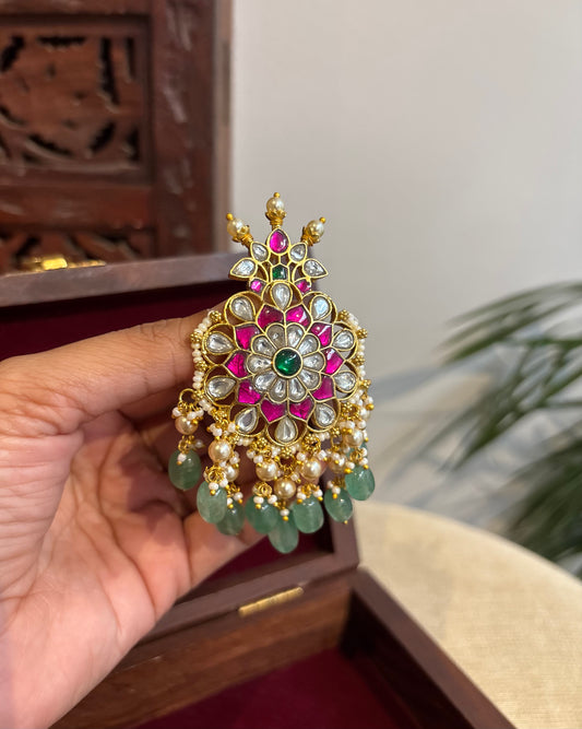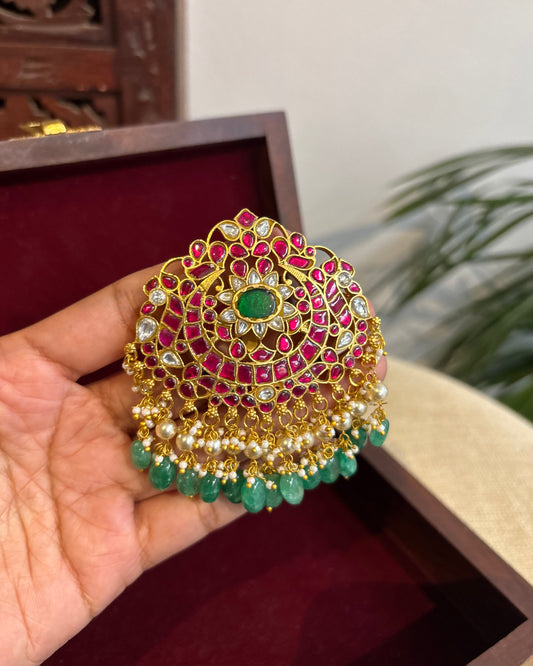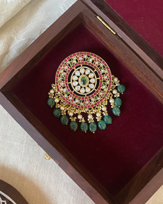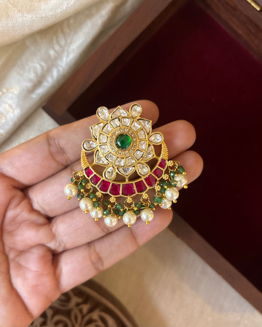 Chand Kundan Hair Pendant – Elegance for Your Braids | HA308