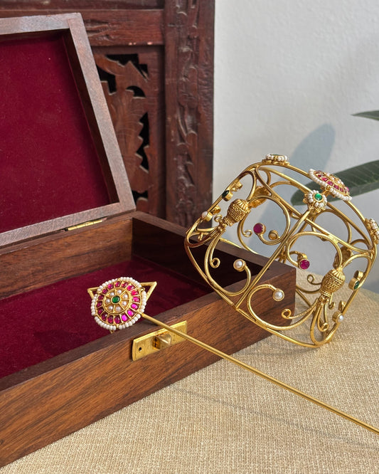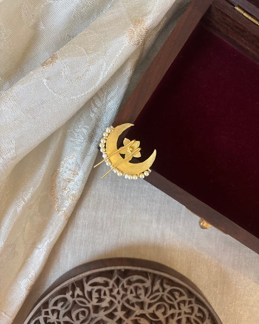 Jadau Kundan Sun & Moon Hair Accessory – Gold Plated Traditional Set | HA301