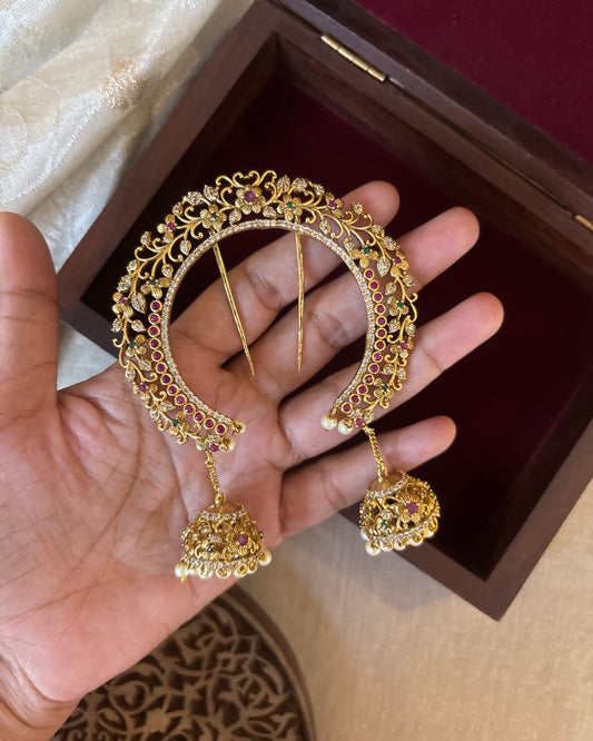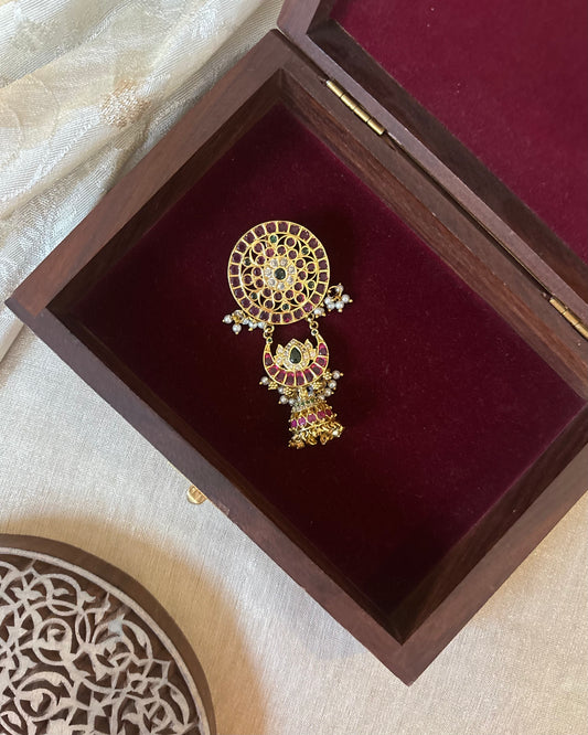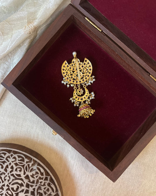 Chand Kundan Hair Pendant – Elegance for Your Braids | HA309