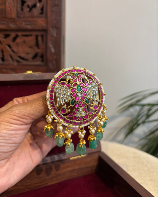 Multicolor Royal Double Pakshi Jadau Kundan Pendant | HA275