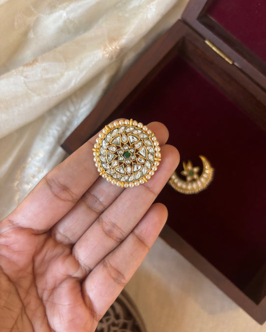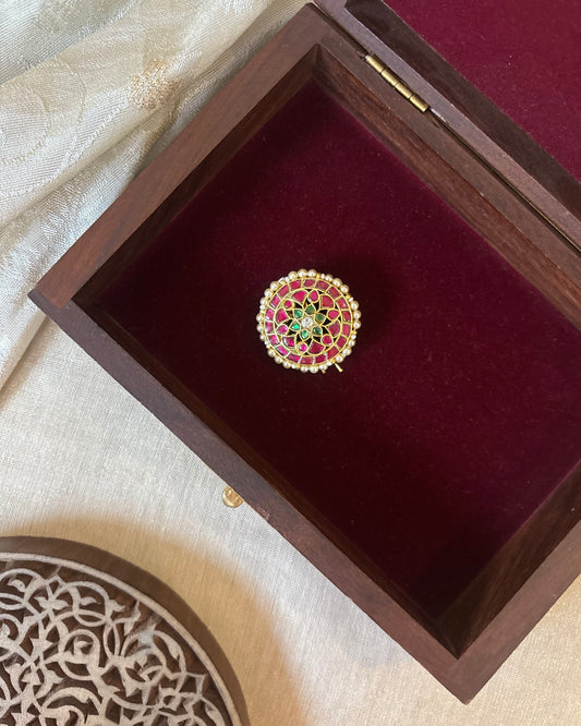 Handcrafted Round Floral Hair Pin – Jadau Kundan | HA276
