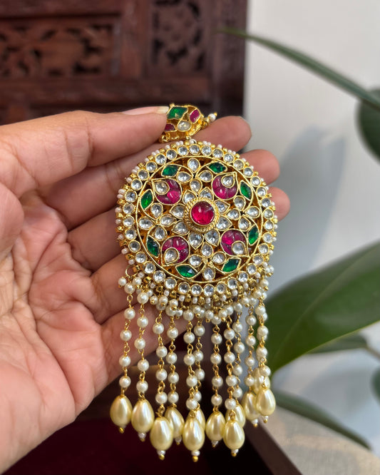 Kundan Chand Hair Pendant – Traditional Bridal Hair Jewellery | HA232
