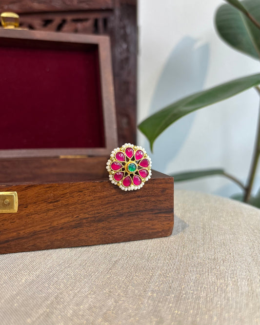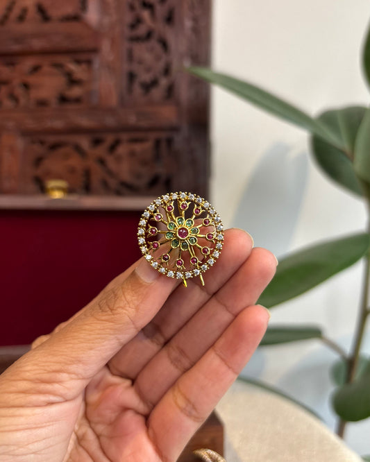 Handcrafted Round Floral Hair Pin – Jadau Kundan | HA216