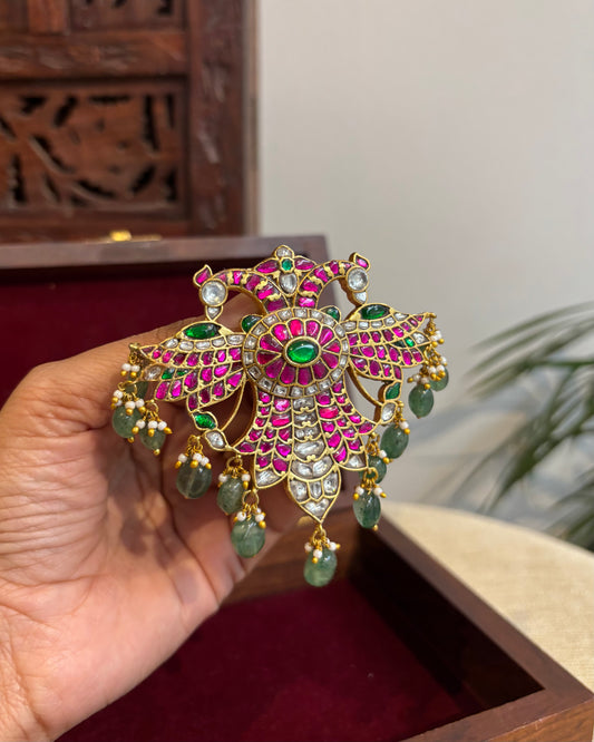 Multicolor Royal Double Pakshi Jadau Kundan Pendant | HA274