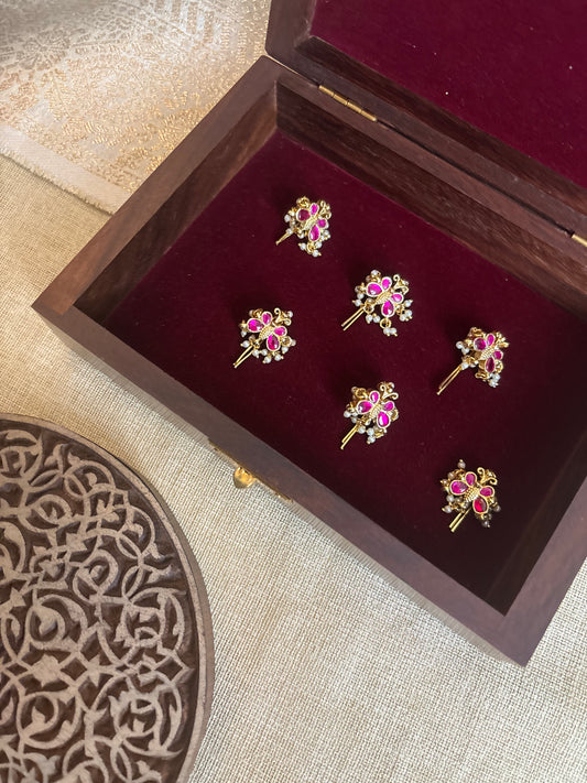 Handcrafted Floral Hair Pins – Jadau Kundan & Pearls | HA120