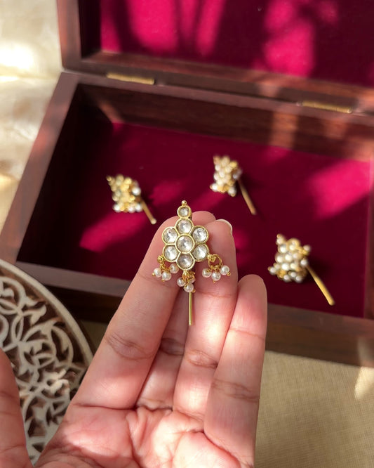 Handcrafted Chand Hair Pins – Jadau Kundan & Pearls | HA119